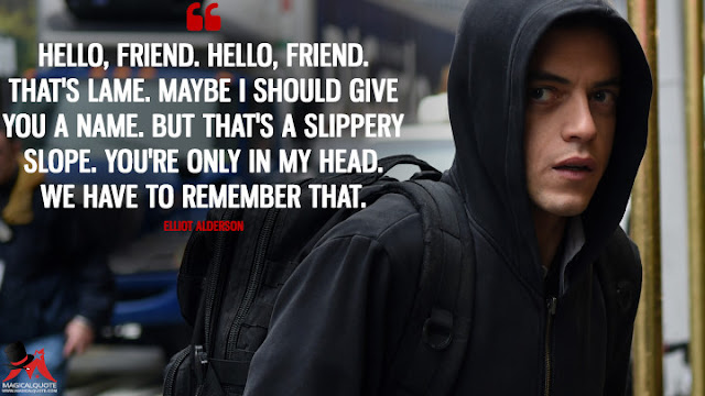 Hello, friend. We might should post a "spoiler alert" warning for the meme above, but the words are the opening lines of the first episode of the first season of the show Mr. Robot. You wouldn't think the very first lines of a series could be a spoiler, but that's the genius of the show - you don't realize it's a spoiler until the end of the last episode of the final season.
